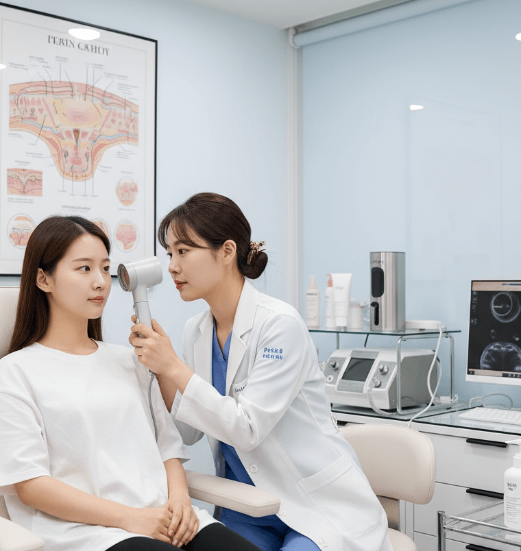 Myeongdong Gounsesang Dermatology Clinic features a clean, modern design and state-of-the-art dermatology equipment. Patients benefit from private treatment rooms, advanced laser systems, and a relaxing waiting area designed to provide a professional and pleasant experience throughout each visit.