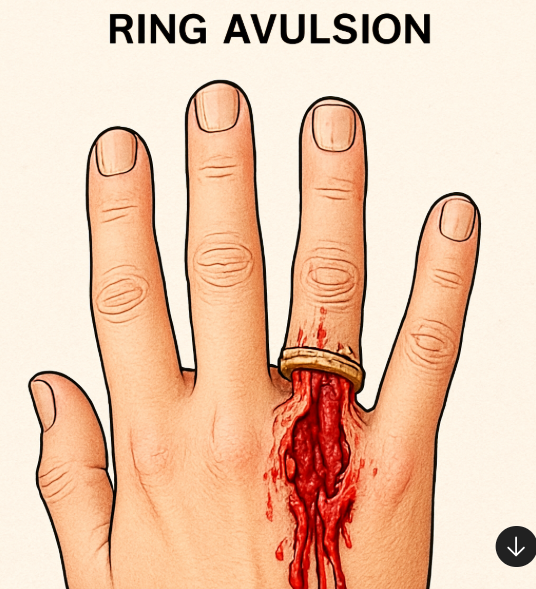 - Ring caught and pulled forcibly on objects such as machinery, doors, or sports equipment