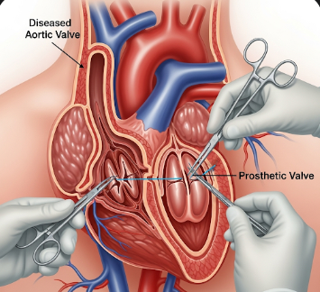- ✅ Diseased aortic valve is removed and replaced with mechanical or tissue valve