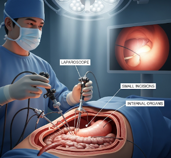 Minimally Invasive Surgery involves performing surgical procedures using small incisions (often 0.5–1.5 cm), cameras, and specialized instruments. Surgeons visualize the operative area on a monitor using a laparoscope or endoscope, allowing precise manipulation.