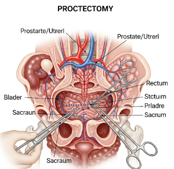 ✔ Proctectomy removes diseased or cancerous rectal tissue