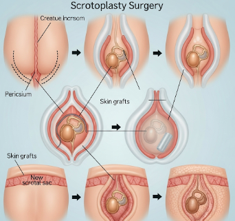 Scrotoplasty is a surgical procedure designed to repair, reconstruct, or reshape the scrotum (the pouch of skin that holds the testicles). It may be performed for medical, functional, or cosmetic reasons, such as correcting congenital abnormalities, repairing trauma, reversing scrotal sagging, or as part of gender-affirming surgery.
