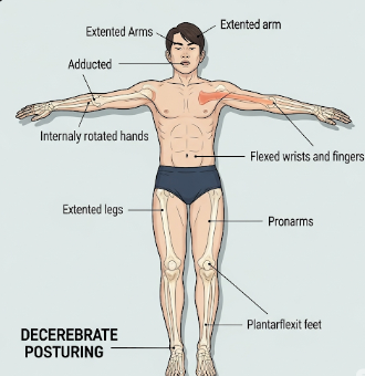 ➡️ If someone shows stiff extended limbs and arching posture after head injury.