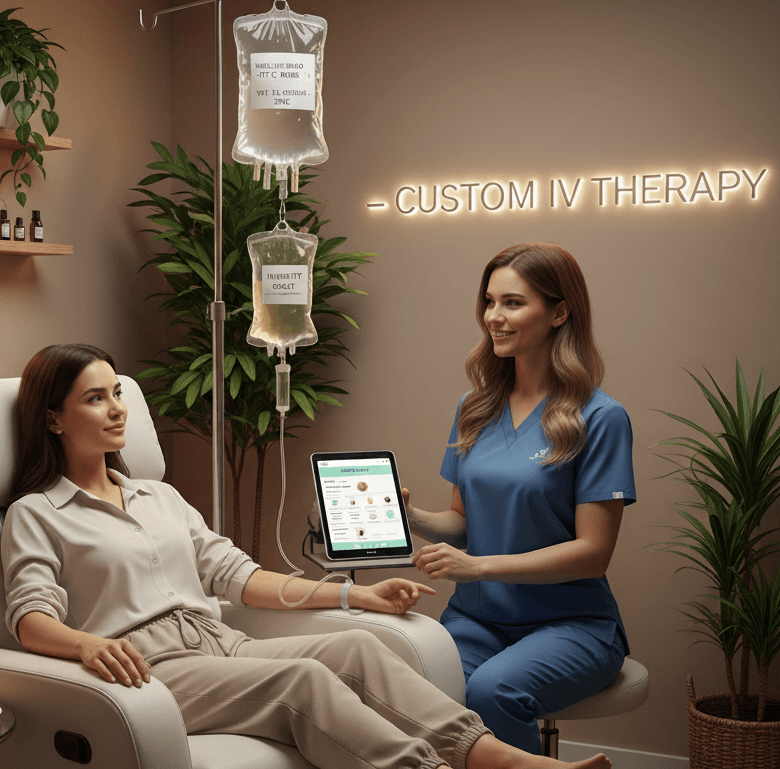 Custom IV drips are personalized intravenous treatments designed to deliver a unique combination of fluids, vitamins, minerals, antioxidants, and amino acids directly into the bloodstream. Unlike standard IV therapies, which follow a set formula, custom drips are tailored to meet each patient’s specific health and beauty goals.