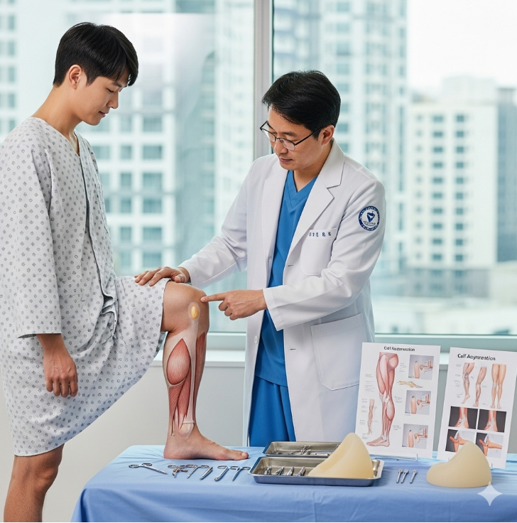 Korean surgeons evaluate calf size, symmetry, and overall leg proportions. 3D imaging may be used to help select the most suitable implant size and shape.