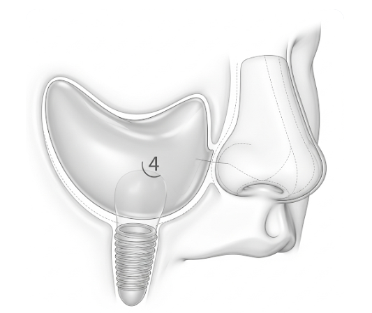 - The implant is inserted and precisely positioned for symmetry and natural contour