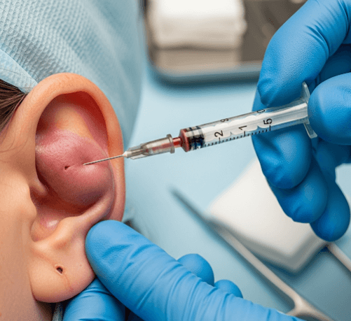 Auricular hematoma drainage in Korea is a medical procedure to treat a collection of blood between the ear’s cartilage and skin.