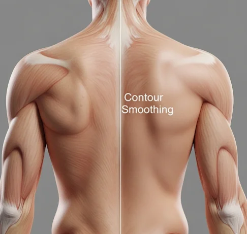 Back contour smoothing is a collection of aesthetic treatments aimed at reducing bulges, rolls, and uneven skin or fat distribution across the back. It targets areas such as: