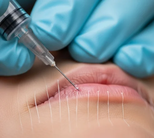 - Botulinum toxin (micro-Botox) → relaxes lip pursing muscles to prevent deepening of lines.
