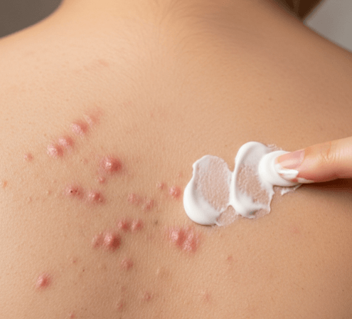 ➝ Review current body care: Heavy lotions, fragranced oils, or pore-clogging sunscreens may be making acne worse.