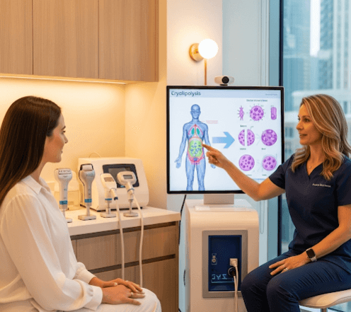 Cryolipolysis, commonly known as CoolSculpting, is a non-surgical fat reduction treatment that uses controlled cooling to freeze and destroy fat cells. The body then naturally eliminates these dead fat cells over weeks, resulting in a slimmer contour.