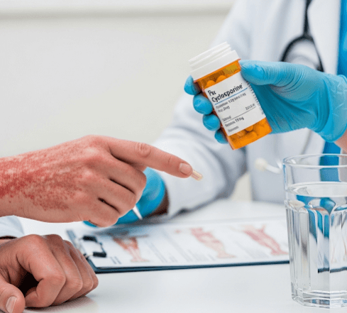 → Improvement is often seen within 2–4 weeks, which makes cyclosporine one of the fastest-acting systemic treatments for psoriasis.