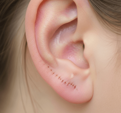 • Skin taping or patches → Temporary support for torn lobes, not a long-term fix.