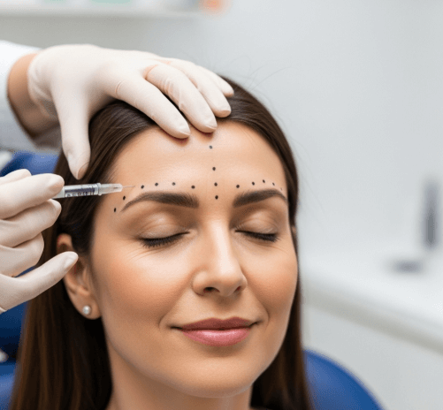 - Skin Botox (Micro-Botox) → For fine lines and pores in the forehead skin itself.