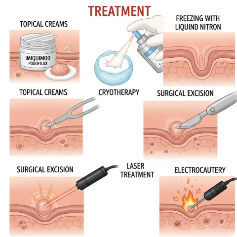 Genital wart treatment addresses benign skin growths caused by the human papillomavirus (HPV) that appear in the genital and anal regions. These warts may be: