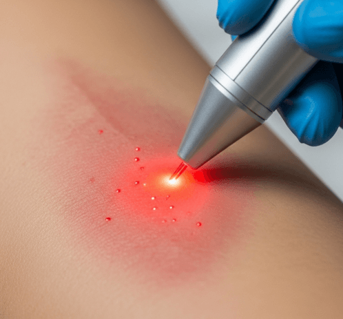 → Laser therapy for redness in scars is a dermatological procedure that uses focused light energy to target and reduce the visible redness of scars.