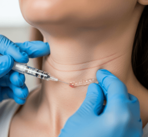 Neck line fillers are often combined with skin boosters and energy-based treatments (HIFU, Thermage) for long-lasting results.