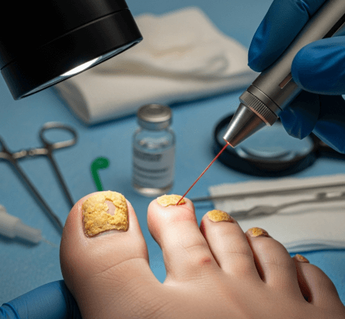 - Nd:YAG laser → penetrates the nail to destroy fungal elements.