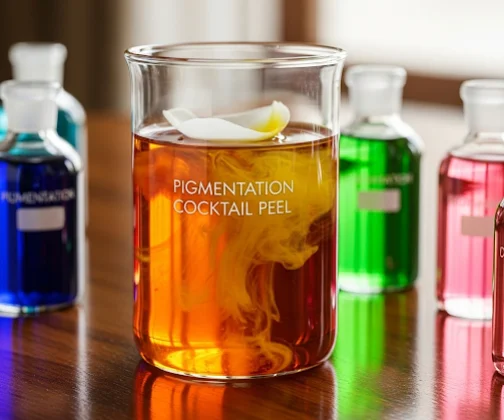 → Pigmentation cocktail peel is a dermatological treatment that combines a customized blend of chemical peeling agents, antioxidants, and brightening ingredients to reduce hyperpigmentation, melasma, sunspots, acne scars, and uneven skin tone.