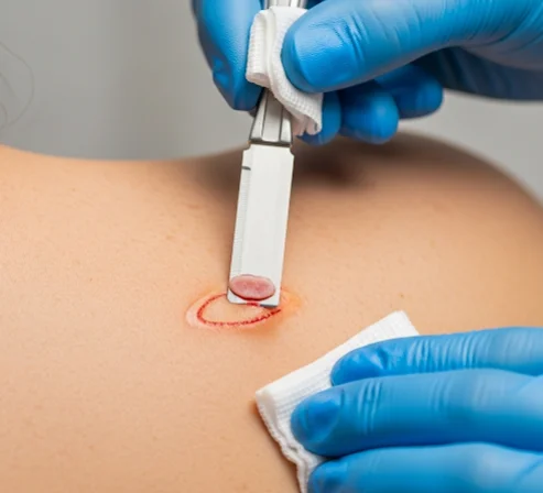 • Punch biopsy → Removes a small circular section of skin including deeper layers.
