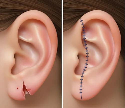 → Cosmetic restoration → A torn earlobe can distort the ear’s shape, affecting balance and beauty.