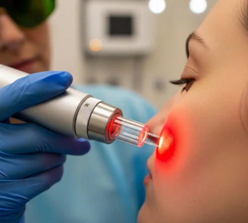 - Consultation → A dermatologist examines the vascular condition with imaging tools to customize settings.